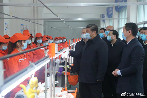 2020年4月21日,習(xí)近平總書記在安康市平利縣老縣鎮(zhèn)錦屏社區(qū)考察社區(qū)毛絨玩具廠