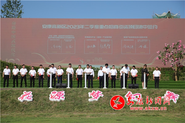 活動現(xiàn)場,還組織開展了納新黨員集中宣誓和老黨員重溫入黨誓詞儀式;為“光榮在黨50年”的老黨員代表頒發(fā)了紀念章;為安康高新區(qū)“學思踐悟新思想、干闖當頭譜新篇”知識競賽獲獎?wù)哳C獎。同時,還舉行了“安康高新區(qū)2023年二季度重點招商引資項目集中簽約活動”,總投資24.7億元的9個產(chǎn)業(yè)項目在現(xiàn)場領(lǐng)導、嘉賓的共同見證下進行了集中簽約。