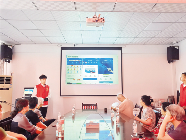 記者走進(jìn)果園社區(qū)會(huì)議室時(shí),志愿者趙子昊正手持話筒,對(duì)照PPT向老人們講解支付寶乘車(chē)碼的使用方法。會(huì)議室一共坐了十幾名老年人,他們聽(tīng)得非常認(rèn)真,不時(shí)有人提出疑惑,趙子昊會(huì)耐心細(xì)致地一一解答。隨后,他又科普了一些防詐騙知識(shí),并協(xié)助每位老人下載了“國(guó)家反詐中心”APP。