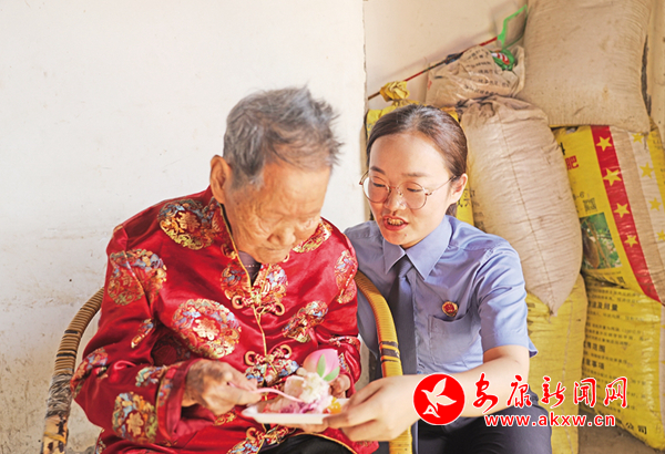 原來,當(dāng)天是她的101歲生日,嵐皋縣檢察院的檢察干警和藺河鎮(zhèn)的干部、附近的村民們一起上門,為她慶祝生日。
