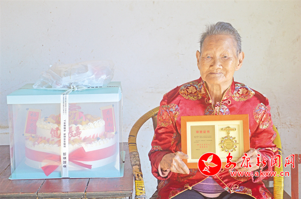 李奶奶看到大家的到來,樂得合不攏嘴。雖然已經(jīng)百歲高齡,但老人思維還比較清晰。聽村里鄰居們介紹,她身子骨很硬朗,走路不需要拐杖,平時(shí)偶爾還會(huì)一個(gè)人出去散步。“能活到百歲,主要是黨的政策好,老了還有錢領(lǐng)(高齡補(bǔ)貼),生活無后顧之憂,子孫輩都有孝心,把我照顧得很好,還有鄰里們的關(guān)心,經(jīng)常陪我聊天。我生活很充實(shí),謝謝你們?yōu)槲疫^生日,真是太開心了!”李奶奶說。