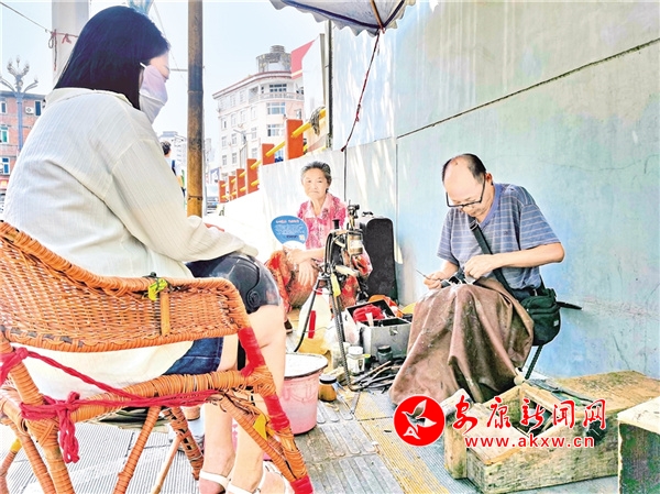“我是這兒的?停饕勤w師傅活干得細(xì)致,修補(bǔ)出來的鞋子比較牢固,收費(fèi)也是有些地方的一半。而且很熱心,有時(shí)老人、孩子的其他東西需要維修,拿過來他總能想方設(shè)法幫忙修理。”領(lǐng)著孩子來此修鞋的趙女士說。