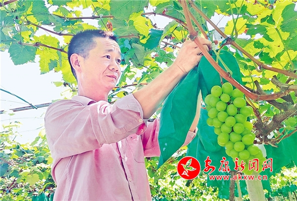 葡萄園負(fù)責(zé)人石洪寶認(rèn)真地察看果子的長勢,眼里滿是豐收的喜悅。“今年葡萄雖然在掛果期受到雨水影響,但是整體長勢還不錯,再過幾天就可以開園采摘了。”拆開一個套袋,晶瑩如玉的陽光玫瑰葡萄顆顆飽滿渾圓,濃郁的果香瞬間涌入鼻腔。石洪寶笑著說:“這可是精心挑選出來的好產(chǎn)業(yè),現(xiàn)在全村以陽光玫瑰葡萄種植為主,共發(fā)展100畝左右,產(chǎn)業(yè)效益很不錯,葡萄已經(jīng)成為帶動村民穩(wěn)定增收的‘致富果’。”