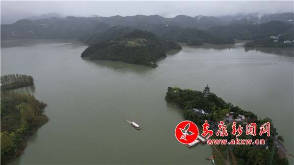 島上杏花春雨,曲徑通幽,朝著濃芳翠處盤折。我們一路彳亍,像水鴨子走旱路,東張西望。經(jīng)過春雨的洗禮,綠色的枝葉青翠欲滴,干凈得惹人憐愛。鳥兒慵懶地停在枝頭,時而只低低劃過眼前,我們?nèi)焕頃澙返睾粑钋逍碌目諝,濃郁芳香的泥土和水霧,沁人心脾。島邊湖水不斷泛起的漣漪,緩緩泛起,靜靜地散去。湖波的蕩漾聲,就像戀人們喁喁情話,輕微的無法聽著。湖上白鷺蹁躚,飛旋蕩漾,悠然自鳴;湖岸果園蔥郁、茶園飄香;遠(yuǎn)處巴山疊嶂,隱現(xiàn)于云煙樹叢,聲色俱佳,賞心悅目。“湖光寫出千峰秀,天影寫出十里秋”的古詩,猶可從這水晶世界讀出。青山綠水和清新空氣已成為都市追求的主題。這瀲滟的湖光,迷蒙的細(xì)雨,乳白色的煙云,就像沁人肺腑的甘露。有誰不被這精彩畫面所吸引?有誰不在這天然氧吧里流連忘返?也怪不得遠(yuǎn)近騷人墨客選此作創(chuàng)作基地,中外游子迷此作療養(yǎng)勝地。