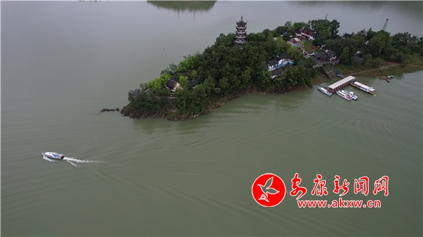 登上游船,憑窗站艙或斜倚欄桿,迎著細(xì)細(xì)春雨,向翠屏島駛?cè)ァ:嫠ú慌d,船像在玻璃上滑行。粼粼水波,像安康絲綢上的細(xì)紋,光滑嫩綠。站在船頭,如駛進(jìn)大海,喜不自勝。雨,像斷了線的珍珠,拋撒在溫柔恬雅的湖面上,點點閃閃,晶瑩明亮。湖上的點水雀不經(jīng)意間從船舷擦水而過,驀然回首,不覺驚異和高興。綿鱗遽然躍水的瞬間,叫人看到飛花點翠的一閃,游子橫波一笑。舷側(cè)的浪花低吟慢唱,猶帶一些委婉悠揚(yáng),頗似顫響在絲竹與板胡上的安康漢調(diào)二黃。船員介紹了翠屏島是因島上的草木蒼翠茂盛,五彩繽紛,從空中俯瞰活像孔雀開屏,故取此名。