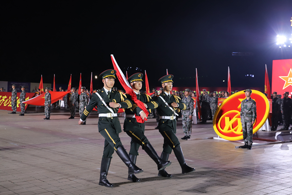 入場(chǎng)儀式完畢,全場(chǎng)起立,面向國(guó)旗,共同高唱國(guó)歌。伴隨著高亢雄壯的國(guó)歌聲,五星紅旗冉冉升起。在國(guó)旗下,全體退役軍人高舉右拳莊嚴(yán)宣誓,表達(dá)了退伍軍人堅(jiān)定不移聽(tīng)黨話(huà)、跟黨走的決心和意志。