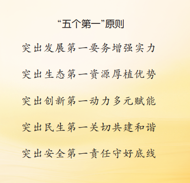 落實(shí)總體要求,實(shí)現(xiàn)預(yù)期目標(biāo),必須牢牢把握高質(zhì)量發(fā)展這個(gè)新時(shí)代的硬道理,深刻領(lǐng)會(huì)核心要義,因地制宜創(chuàng)新落實(shí),突出“五個(gè)第一”原則: