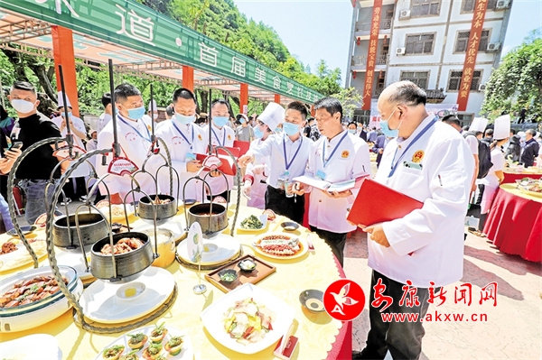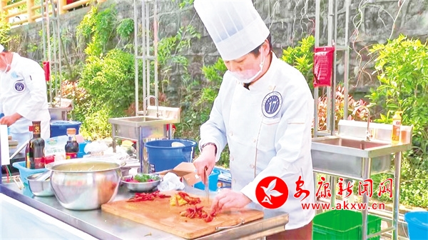 首屆美食烹飪技能大賽吸引了全縣做菜高手和游客積極參與。 張?zhí)毂?攝