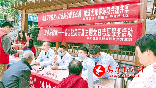 紫陽縣城關(guān)鎮(zhèn)環(huán)城路社區(qū)與紫陽縣衛(wèi)健局聯(lián)合開展“義診送健康”主題黨日活動(dòng)。儲(chǔ)茂銀 攝