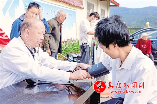 石泉縣池河鎮(zhèn)中心衛(wèi)生院為“家庭醫(yī)生”服務(wù)對(duì)象開展定期檢查。 張磊 攝