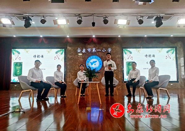 讀書成果展示匯報環(huán)節(jié),安康一小校長胡剛以《閱讀“十個一” 幸福“百分百”》為題匯報學校書香校園建設成果,為師生們帶來了精彩紛呈的經(jīng)典誦讀、讀書沙龍、親子誦讀、課本劇表演、優(yōu)秀教師閱讀經(jīng)驗分享等展示。