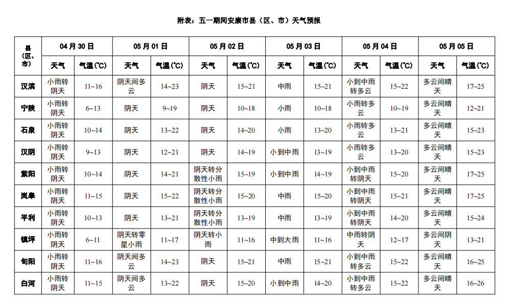溫馨提示:5月1—2日我市以陰天到多云天氣為主,溫度適宜,空氣質(zhì)量較好,適合外出游玩;3—4日有明顯降水天氣降水過(guò)程,需防范降水導(dǎo)致的道路濕滑、低能見(jiàn)度等對(duì)道路交通的不利影響。公眾可及時(shí)關(guān)注最新預(yù)報(bào)預(yù)警信息,合理安排出行時(shí)間。