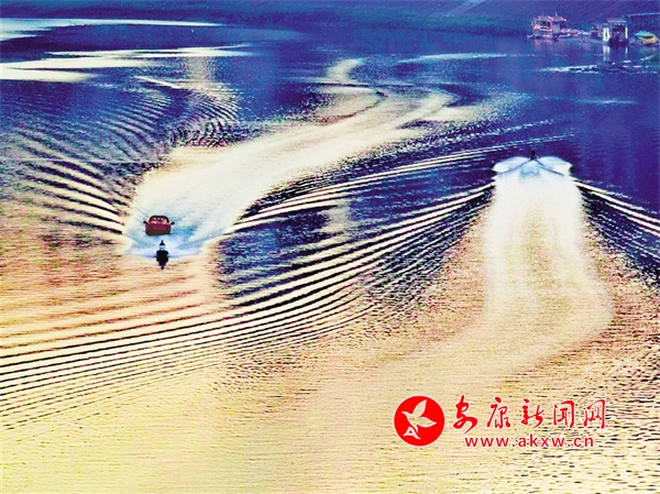 “五一”小長假期間,快艇在漢江安康城區(qū)東壩段載著游客往返穿梭,成為一道獨特的風(fēng)景。吳定國 攝
