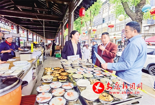 漢濱區(qū)老城街道“五一”小長假期間在東關(guān)開展民俗美食體驗活動,吸引不少游客與市民駐足品嘗。陳德模 攝