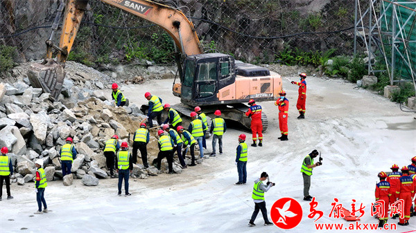 啟動(dòng)儀式上,漢陰縣介紹安全宣傳及應(yīng)急演練情況,市安委辦對(duì)全市安全生產(chǎn)月活動(dòng)再安排再部署。隨后,開展了非煤礦山事故應(yīng)急演練。演練模擬持續(xù)強(qiáng)降雨天氣下,漢陰西鐵義德石料有限公司廠區(qū)出現(xiàn)邊坡坍塌導(dǎo)致人員、設(shè)備被掩埋險(xiǎn)情,市、縣、鎮(zhèn)、企業(yè)四級(jí)應(yīng)急救援隊(duì)伍緊急出動(dòng),展開聯(lián)合搶險(xiǎn)救援。演練過程中,各小組緊密配合,順利完成了應(yīng)急響應(yīng)、警戒疏散、交通管制、信息上報(bào)、企業(yè)自救、傷員救治、雷達(dá)生命探測儀救援、無人機(jī)運(yùn)輸物資等演練科目,模擬險(xiǎn)情得到及時(shí)消除。本次演練場景逼真,貼近實(shí)戰(zhàn),實(shí)現(xiàn)了鍛煉隊(duì)伍、磨合機(jī)制,強(qiáng)化應(yīng)急處置能力的目標(biāo),無人機(jī)、生命探測儀等新技術(shù)裝備的運(yùn)用,有效提升礦山應(yīng)急救援能力。