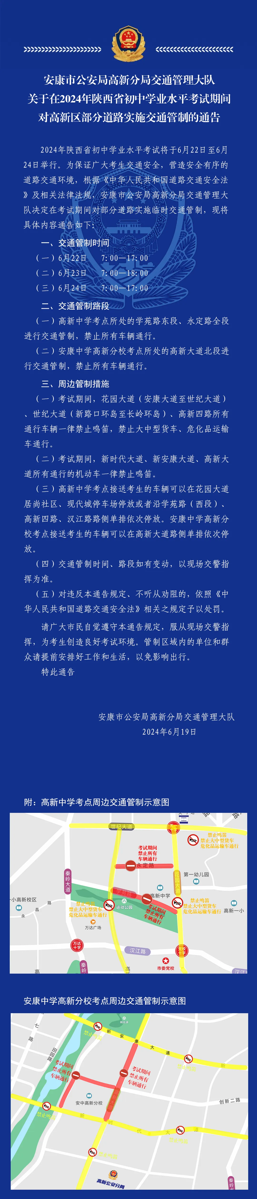 2024年陜西省初中學(xué)業(yè)水平考試期間 安康高新區(qū)部分道路實施交通管制