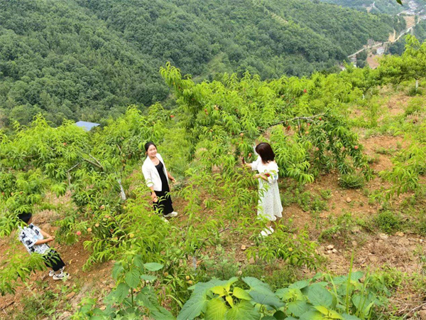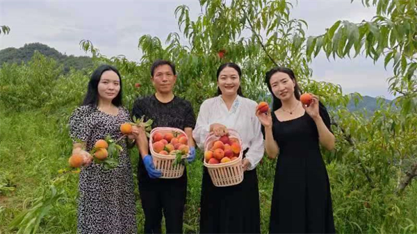 “哇!這桃子太多了,齊天大圣來了都舍不得走?诟胁诲e,連蜜蜂都喜歡吃,F(xiàn)在兩三萬斤黃桃已經(jīng)成熟,急待銷售,歡迎廣大朋友們前來采摘!”“這漫山遍野的桃子,個頭大、味道鮮美,急待銷售,在這里采摘桃子,不僅可以吃到新鮮的桃子,還可以欣賞到美麗的風景”……賢話多多、錦園花開英子、王蓉顧不上休息,走進桃園,通過直播、抖音、短視頻幫助陳顯攀推銷黃桃。當天,網(wǎng)上下單訂購300余公斤,詢問地址上山采購的人也陸續(xù)到來,陳顯攀焦躁的心情得到緩解。