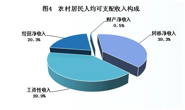 全市農(nóng)村居民人均可支配收入14403元,比上年增加1035元,增長(zhǎng)7.7%。其中,工資性收入5742元,增長(zhǎng)7.9%,占可支配收入的比重為39.9%;經(jīng)營(yíng)凈收入2928元,增長(zhǎng)6.7%,占比20.3%;財(cái)產(chǎn)凈收入68元,增長(zhǎng)9.9%,占比0.5%;轉(zhuǎn)移凈收入5664元,增長(zhǎng)8.1%,占比39.3%。