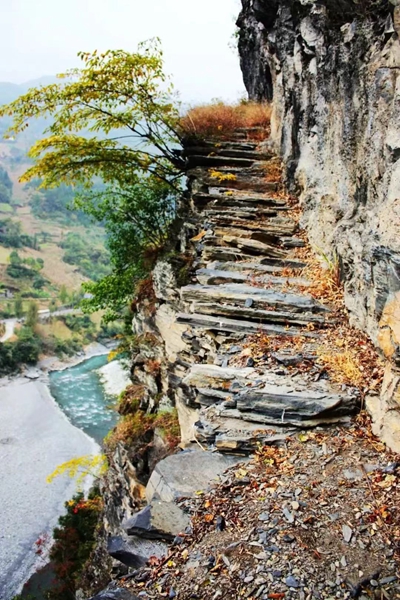 秋天徒步于鎮(zhèn)坪古鹽道,仿若進(jìn)入一個(gè)金色的世界。秋日溫煦的陽光透過金色的樹葉灑落在石板上,那一張張金黃的葉子像黃色的蝴蝶,在光與影中飛舞著,這是秋日獨(dú)有的靈動(dòng)。