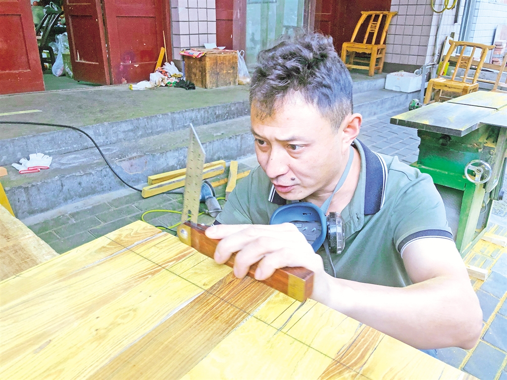 隨著工業(yè)化的發(fā)展,現在定做全套家具的人少了,更多的是做一些長條桌、馬扎、靠背椅子、菜墩子等等,像鼓樓西、東關一些傳統老字號餐飲店里用的就是馬金平做的桌椅,看起來古樸、坐起來舒服。