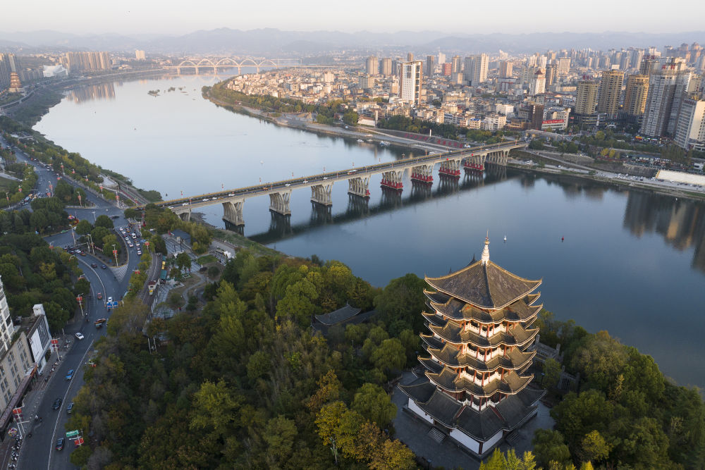 漢江流過(guò)的安康市城區(qū)景色(11月5日攝,無(wú)人機(jī)照片)。新華社記者邵瑞攝