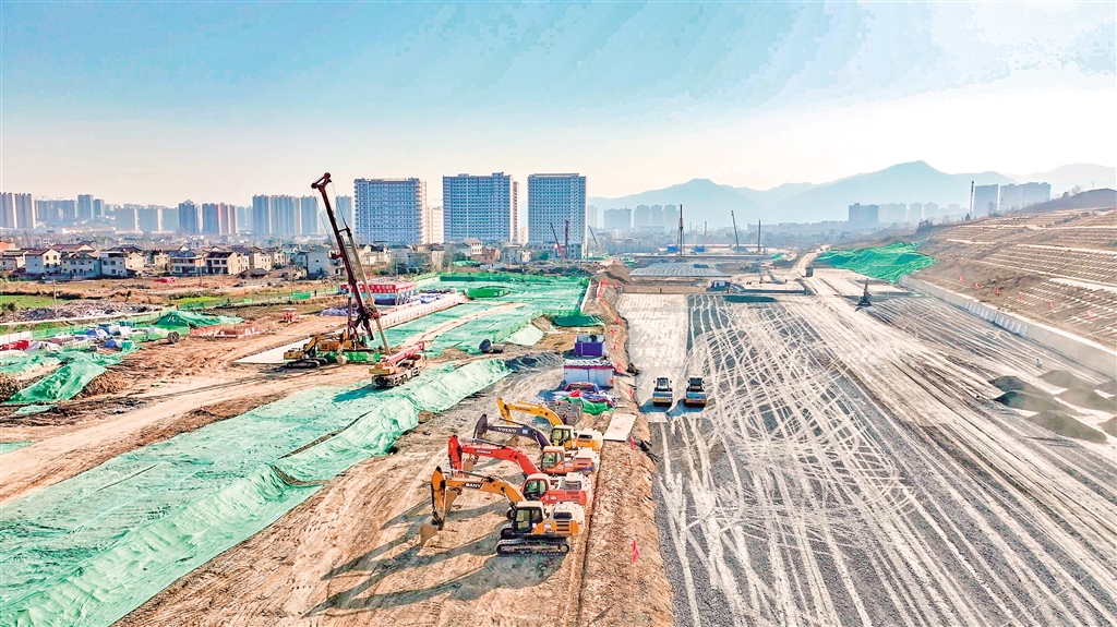 西康高鐵安康西站項(xiàng)目建設(shè)現(xiàn)場(chǎng)。 記者 李俊 攝