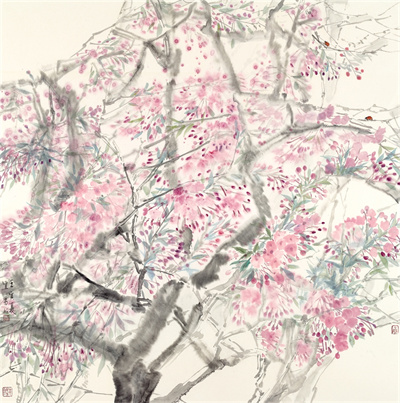 喬宜男:在我藝術(shù)面貌的成熟過(guò)程中,傳承長(zhǎng)安藝術(shù)文脈,并在在全國(guó)藝術(shù)發(fā)展格局中構(gòu)建自己的藝術(shù)體系,這兩步至關(guān)重要。在中國(guó)國(guó)家畫(huà)院花鳥(niǎo)畫(huà)所工作期間,我組織并聯(lián)絡(luò)全國(guó)各地的老、中、青三代畫(huà)家開(kāi)展創(chuàng)作研討,這不僅是一次深入的學(xué)術(shù)交流,實(shí)際上也是對(duì)我自己的中國(guó)畫(huà)創(chuàng)作在中國(guó)美術(shù)體系下如何發(fā)展的思考與實(shí)踐。