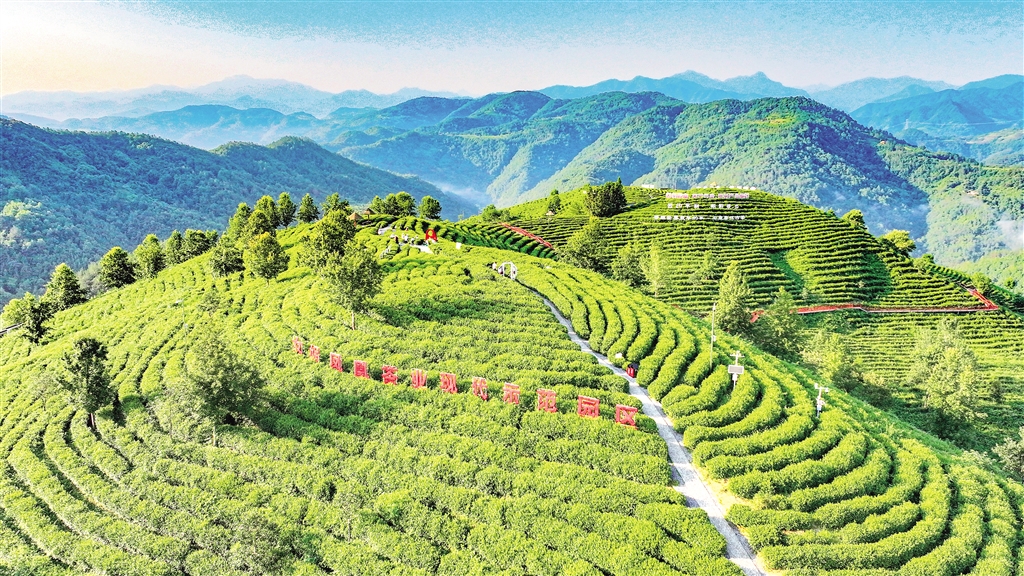 茶山上,茶農(nóng)忙著搶采春茶,游客穿梭其間打卡留影。目睹這熱鬧非凡的景象,蔣家坪村村民的臉上綻放出質(zhì)樸而滿足的笑容。大家驚喜地發(fā)現(xiàn),5年來,老縣鎮(zhèn)無邊光景一時新,自家茶園風光旖旎,吸引眾多游客前來。從賣茶葉到“賣風景”,蔣家坪村走出一條茶旅融合新路子,實現(xiàn)生態(tài)效益與經(jīng)濟效益“雙豐收”,發(fā)展成果不斷惠及群眾。