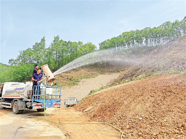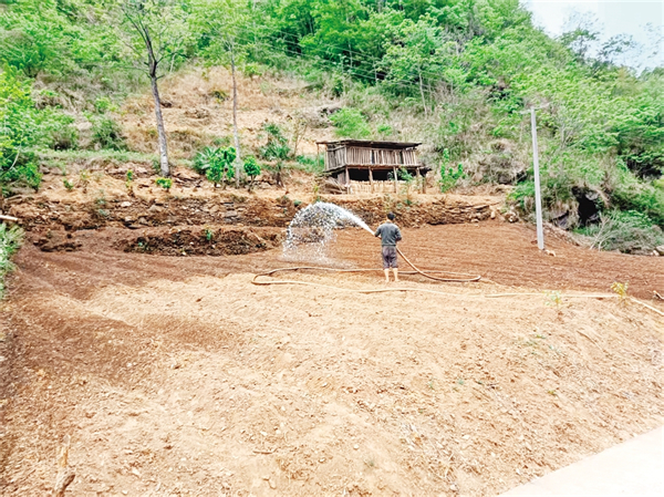 4月25日,平利縣長安鎮(zhèn)金沙河村安排運輸投送農(nóng)業(yè)生產(chǎn)用水,對500畝烤煙幼苗進行灌溉。胡鈴鈴 攝