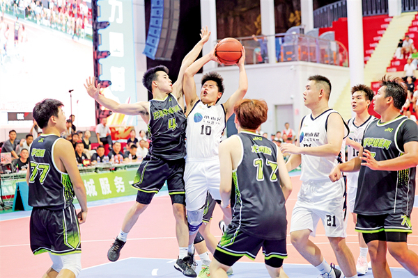 安康企協(xié)桃花源代表隊(duì)在外籍球員CJ·特羅特和賈森·漢尼拔的帶領(lǐng)下一度領(lǐng)先12分,南宮山代表隊(duì)球員在主力隊(duì)員梁歡、朱思禹先后受傷的不利局面下,由彭博帶領(lǐng)球隊(duì)艱難咬住比分。距離全場比賽結(jié)束9.8秒,南宮山代表隊(duì)3號(hào)隊(duì)員李子豪外線一記精準(zhǔn)的3分把比分追至78平,這是兩隊(duì)比分首次打平。CJ·特羅特后場接球,直插籃下,轉(zhuǎn)身后仰,將比分反超2分,留給南宮山隊(duì)3.2秒。南宮山代表隊(duì)4號(hào)球員彭博一記長傳跨過半場,精準(zhǔn)找到了6號(hào)球員韓邦,上籃,80分平,加時(shí)賽,球場響起山呼海嘯的歡呼。加時(shí)賽中,南宮山代表隊(duì)用一次次精準(zhǔn)的投籃、拼盡全力的防守,最終以93:88的比分奪得冠軍。