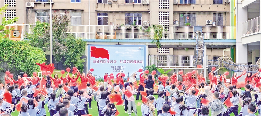 9月30日,安康市幼兒園舉辦“萌娃列隊展風(fēng)采 紅星閃閃趣運(yùn)動”國慶主題活動。 李生珍 攝