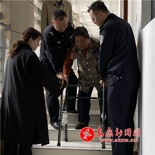 4月14日上午9時(shí)許,安康中級(jí)法院法警支隊(duì)值班干警通過網(wǎng)絡(luò)監(jiān)控看到一位老大媽手扶輪椅獨(dú)自一人,步履蹣跚、顫顫巍巍在訴訟通道行走,值班干警迅速趕到老人身邊,經(jīng)詢問得知,老大媽劉某今年70歲,是一位被上訴人來院開庭。為了幫助劉某到庭參加訴訟,值班干警李康、陳文環(huán)、鄒琨三人小心將他護(hù)送到法庭,安排好座椅讓其就座。劉某對(duì)法警隊(duì)員體貼的舉動(dòng)一再表示感謝。(圖文/劉峰 馬小松)