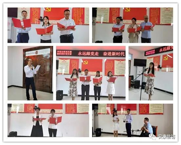 活動現(xiàn)場,大家面對鮮紅的黨旗,重溫入黨誓詞,再次以錚錚誓言激勵自己,不忘初心、牢記使命,對黨忠誠、為民務(wù)實,永遠跟黨走。大家先后朗誦詩歌《沁園春 雪》《同一首歌》《我是中國人》《黨的贊歌》《我們永遠跟黨走》,分享了黨史小故事《藏在衣柜里的父子情》,帶來了《祖國我永遠熱愛您》《唱支山歌給黨聽》《小白楊》,吉他彈唱《故鄉(xiāng)梨花又開放》等膾炙人口的歌曲。同時還穿插了黨史知識有獎問答和“你比我猜”兩個互動環(huán)節(jié),推動機關(guān)黨員干部與基層黨員干部的互動,增進了黨史學(xué)習(xí)。通過傳唱紅色經(jīng)典,銘記黨恩,堅定信仰,錘煉黨性。