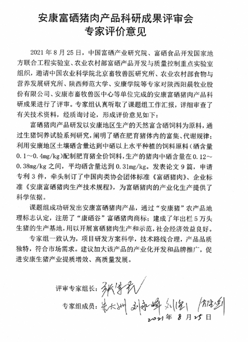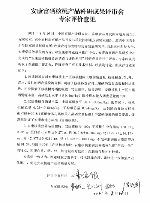 本次評(píng)審中,專家組認(rèn)真聽取了課題組工作匯報(bào),詳細(xì)審查了有關(guān)技術(shù)資料,經(jīng)質(zhì)詢討論后一致認(rèn)為:四大富硒特色產(chǎn)業(yè)課題研發(fā)方案科學(xué)、技術(shù)路線合理,研究成果達(dá)到國內(nèi)先進(jìn)水平,天然富硒是安康得天獨(dú)厚的資源優(yōu)勢(shì),培育開發(fā)出的產(chǎn)品品質(zhì)優(yōu)良,符合市場(chǎng)需求。建議充分利用安康地區(qū)天然富硒資源優(yōu)勢(shì),加快富硒特色產(chǎn)業(yè)標(biāo)準(zhǔn)的制定和規(guī);a(chǎn),做優(yōu)產(chǎn)品、做強(qiáng)產(chǎn)業(yè)、提升產(chǎn)值,加大該產(chǎn)品的產(chǎn)業(yè)化開發(fā)和品牌推廣力度,促進(jìn)產(chǎn)業(yè)提質(zhì)增效。