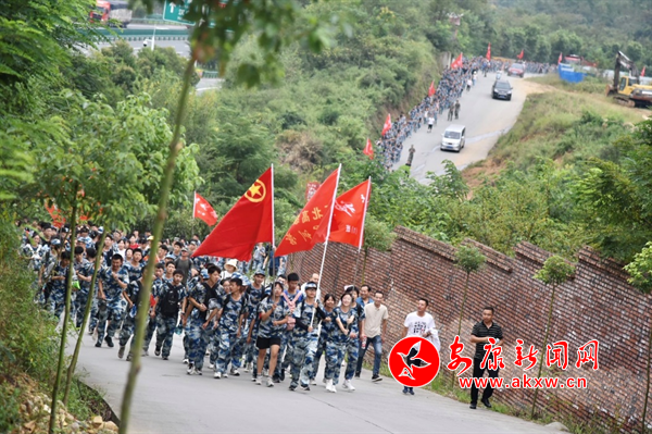 上午7時,全體高一新生在學(xué)校操場集結(jié)完畢,懷著激情與期待,整裝待發(fā)。出發(fā)前,遠(yuǎn)足活動總指揮、校團(tuán)委書記、高一年級蹲級領(lǐng)導(dǎo)胡萬雷作了動員講話,他要求同學(xué)們以這次遠(yuǎn)足活動為契機(jī),強(qiáng)健體魄,磨練意志,培養(yǎng)吃苦精神,強(qiáng)化紀(jì)律意識,戰(zhàn)勝自我,勇往直前,并強(qiáng)調(diào)了遠(yuǎn)足活動中的注意事項。