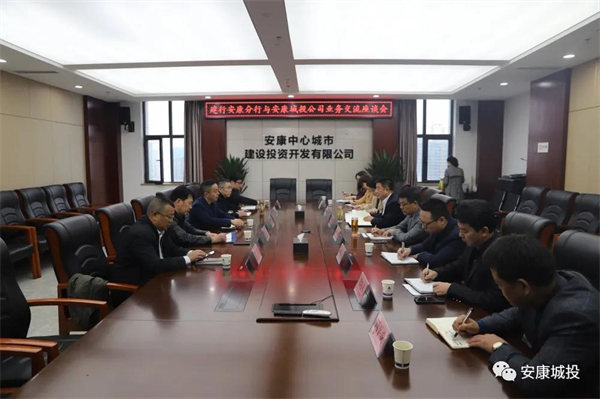 為進(jìn)一步深化銀企合作的深度和廣度,10月26日,安康中心城市建設(shè)投資開發(fā)有限公司分別與建設(shè)銀行安康分行、郵儲(chǔ)銀行安康分行、西安銀行安康分行召開業(yè)務(wù)交流座談會(huì),就推動(dòng)全方位、多渠道合作等事宜進(jìn)行了深入交流。