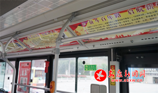 市公交公司黨委利用公交車流動性強、宣傳面廣的優(yōu)勢,精心打造黨史學習教育移動課堂和大眾學讀基地。黨史學習教育移動課堂以7路、12路和13路3條公交線路為核心,在40輛公交車內安裝400塊宣傳展板,主要展示安康紅色革命故事和典型人物事跡等內容,讓乘客在乘車途中隨時隨地學黨史,打通黨史學習教育“最后一公里”。黨史學習教育大眾學讀基地以安康火車站公交首末站為核心,在護欄上安裝20余塊學習展板,便于乘客候車、職工休息時學習黨史,推動黨史學習教育融入生活、融入日常。