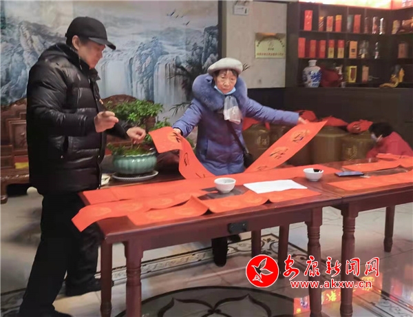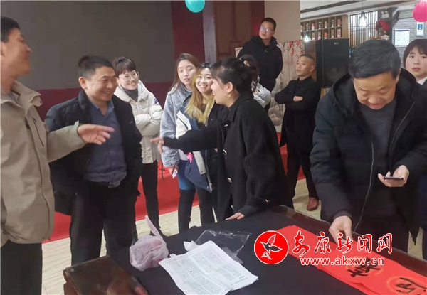 1月22日下午研究會(huì)一行來到平利縣新立人力資源公司,現(xiàn)場(chǎng)為企業(yè)職工擬聯(lián)即書,并開展聯(lián)誼活動(dòng)。"山安水安人自安,天安地安亦合安";“牛存厚德辭舊歲,虎振雄風(fēng)迎新立”“春臨化龍千山秀,福至女媧萬(wàn)木春”……結(jié)合實(shí)際自擬聯(lián)語(yǔ),深受歡迎。
