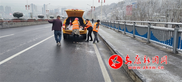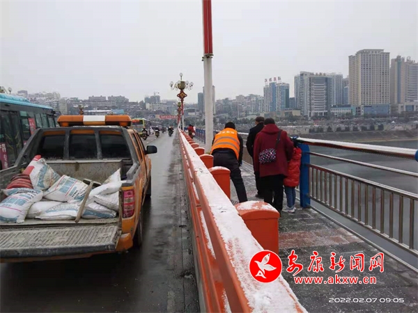 據(jù)了解,7日清晨,安康市市政園林處共投入人力40余人,融雪劑3噸,車輛10臺(tái),對城區(qū)雷神殿、馬坎天橋、漢江一橋、三橋、南環(huán)干道陳家溝大橋及部分公園集中開展除雪融冰工作。