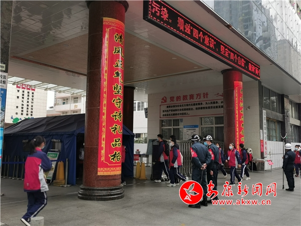 漢濱高級(jí)中學(xué)西校區(qū)的同學(xué)有序地進(jìn)入校園SE3安康新聞網(wǎng)