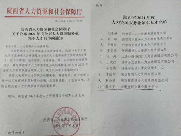 近日,省人力資源和社會保障廳印發(fā)《關于公布2021年度全省人力資源服務業(yè)領軍人才名單的通知》我市創(chuàng)業(yè)就業(yè)服務中心副主任、二級調(diào)研員蔡小安獲“2021年度全省人力資源服務業(yè)領軍人才”稱號。