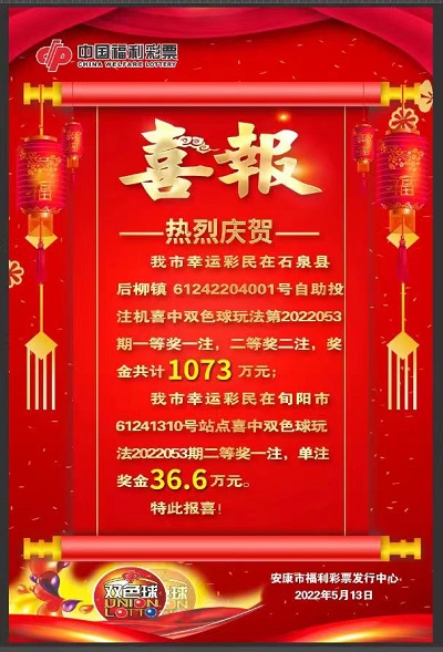 本網(wǎng)訊(通訊員 汪渲)5月12日晚,雙色球第2022053期開獎(jiǎng),當(dāng)期雙色球紅球號(hào)碼為10、14、18、23、27、33,藍(lán)球號(hào)碼為15。全國(guó)共中出4注一等獎(jiǎng),單注獎(jiǎng)金為1000萬元。81注二等獎(jiǎng),單注金額36.6萬元。安康有兩位幸運(yùn)彩民分別喜中雙色球一等獎(jiǎng)和二等獎(jiǎng)。