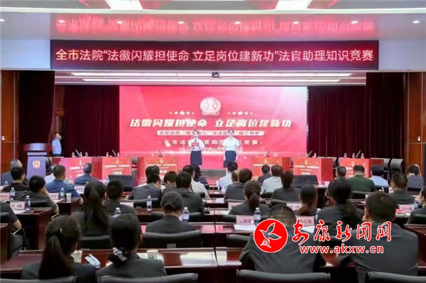 本網(wǎng)訊(通訊員 馬小松 許萌)7月19日下午,安康中院舉行全市法院系統(tǒng)“法徽閃耀擔(dān)使命 立足崗位建新功”知識(shí)競(jìng)賽決賽。此項(xiàng)活動(dòng)是安康市“喜迎黨的二十大,強(qiáng)國(guó)復(fù)興有我”群眾性主題宣傳教育中的一項(xiàng),旨在學(xué)習(xí)貫徹習(xí)近平法治思想,進(jìn)一步加強(qiáng)法官助理隊(duì)伍建設(shè),推動(dòng)“兩個(gè)確立”主題教育走深走實(shí),以實(shí)際行動(dòng)迎接黨的二十大勝利召開(kāi)。