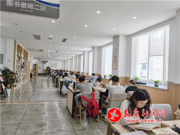 在安康圖書館筆者看到,圖書館內(nèi)清涼靜謐、書香四溢,各個閱覽室內(nèi)都能看到學(xué)生認(rèn)真閱讀的身影,他們徜徉在書的海洋,安靜閱讀,給自己“充電”。據(jù)悉,安康圖書館上午九點開門,由于場地有限,容納讀書學(xué)習(xí)的桌椅不多,所以很多想來圖書館看書學(xué)習(xí)的學(xué)生就會早早來排隊占位。