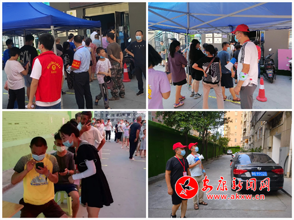 8月16日16時,太陽火辣辣地直射地面,安康市區(qū)街道酷熱難耐。在北門社區(qū)面粉廠家屬院第一輪核酸檢測采樣現(xiàn)場,安康市公路局下沉的5名志愿服務(wù)隊員各司其職、各盡其責(zé),助力核酸檢測高效有序完成。