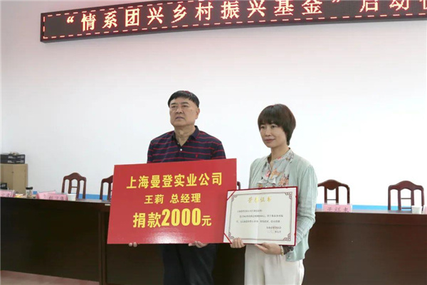 據(jù)安康市慈善協(xié)會(huì)副會(huì)長(zhǎng)袁粒介紹:在此前的考察交流中,于登玉認(rèn)為團(tuán)興村發(fā)展前景廣闊,當(dāng)前條件受限,只要有愛心相助,就能加快步伐。于是,在他的善舉推動(dòng)下,安康市慈善協(xié)會(huì)經(jīng)與包聯(lián)該村的市商務(wù)局溝通,決定設(shè)立“情系團(tuán)興 鄉(xiāng)村振興基金”。成立儀式上,上海曼登實(shí)業(yè)公司、陜南農(nóng)產(chǎn)品批發(fā)市場(chǎng)、漢城國(guó)際商業(yè)街、安康悠源食品有限公司等9家愛心企業(yè),現(xiàn)場(chǎng)為基金捐款19.33萬(wàn)元。