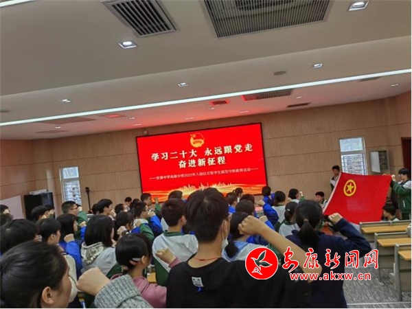 本網(wǎng)訊(通訊員 劉玉。10月20日,安康中學(xué)高新分校團(tuán)委舉行了“學(xué)習(xí)二十大 永遠(yuǎn)跟黨走 奮進(jìn)新征程”2022年新團(tuán)員入團(tuán)儀式暨學(xué)生規(guī)范守則教育活動(dòng),旨在以入團(tuán)儀式的形式開展具象化、分眾化規(guī)范守則教育活動(dòng),引導(dǎo)廣大團(tuán)員青年弘揚(yáng)愛國(guó)主義精神,傳承紅色基因,增強(qiáng)責(zé)任感和使命感。學(xué)校黨支部副書記、團(tuán)委書記、各班團(tuán)支書和團(tuán)員代表參加。
