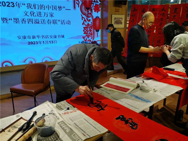 歡天喜地度佳節(jié),張燈結(jié)彩迎新春。春節(jié)將至,為積極踐行社會主義核心價值觀,傳承弘揚中華優(yōu)秀傳統(tǒng)文化,豐富群眾精神文化生活,營造歡樂喜慶的節(jié)日氛圍,助力創(chuàng)建全國文明城市。1月13日,安康市新華書店在安康書城舉辦“我們的中國夢”——文化進萬家暨“墨香四溢送春聯(lián)”活動。