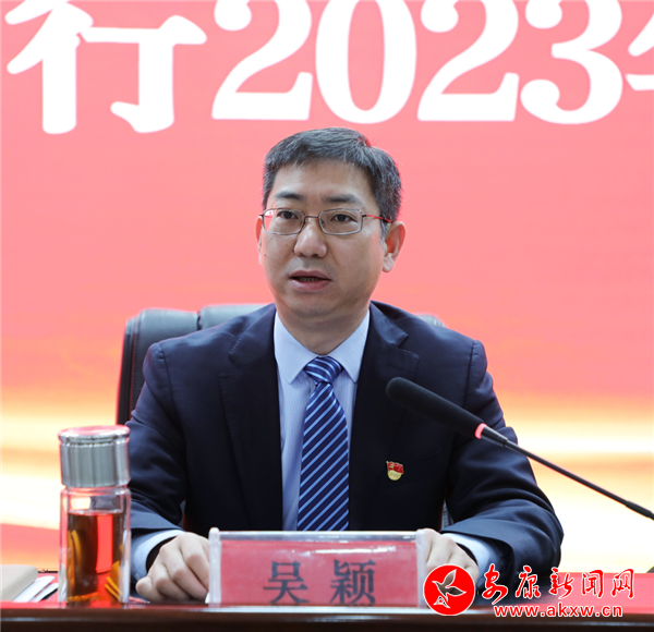 省聯社安康審計中心副主任、安康農商銀行黨委書記、董事長吳穎作了《奮進新征程 譜寫新篇章 努力在全面貫徹落實黨的二十大精神開局之年開創(chuàng)高質量發(fā)展新局面》主題講話,講話從政治立行從嚴管理、黨建引領融合發(fā)展、內優(yōu)結構穩(wěn)固陣地、強化落實堅守定位、嚴控風險守牢底線、勇挑重擔展現形象六個方面全面回顧總結了2022年主要工作開展情況,明確了2023年全行工作指導思想。