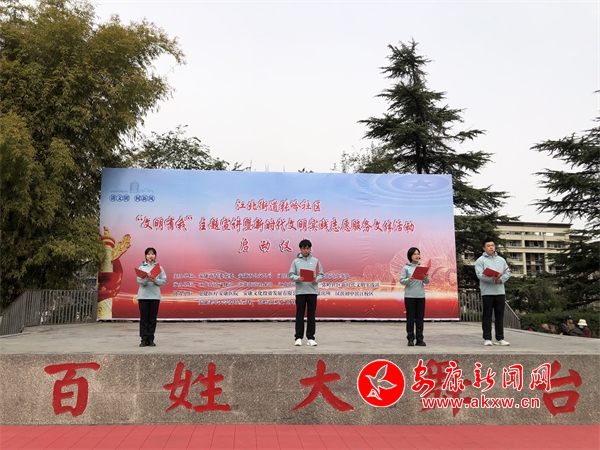 本網(wǎng)訊(通訊員 劉東)3月1日,“文明有我”主題宣講暨新時(shí)代文明實(shí)踐志愿服務(wù)文體活動(dòng)在江北街道張嶺社區(qū)舉行,豐富多彩的創(chuàng)文宣講和美輪美奐的文藝表演穿插進(jìn)行,讓轄區(qū)群眾在家門口盡享文化大餐、樂(lè)享文明成果。